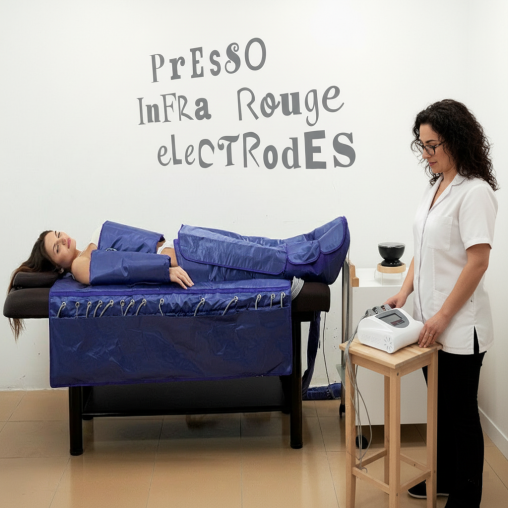 La machine Presso 3en1 luxe combine 3 soins essentiels dont tout institut de beauté ou centre beauté minceur a besoin : Presso esthetique, électrostimulation et infrarouge.